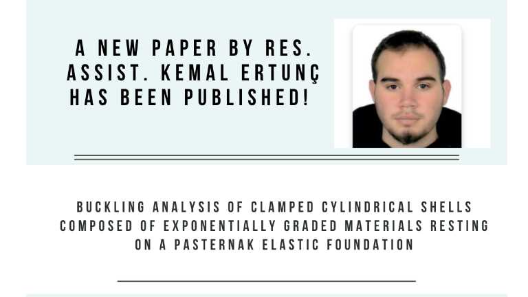 Res. Asst. Kemal ERTUNÇ, from our department, presented his paper titled “Buckling Analysis of Clamped Cylindrical Shells Composed of Exponentially Graded Materials Resting on a ...
