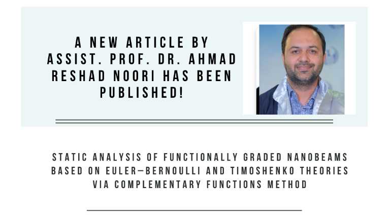 Asst. Prof. Ahmad Reshad NOORI and his PhD student Ahmed Mohammad Wasfi ALHASAN have published a study examining the static behavior of functionally graded nanobeams ...