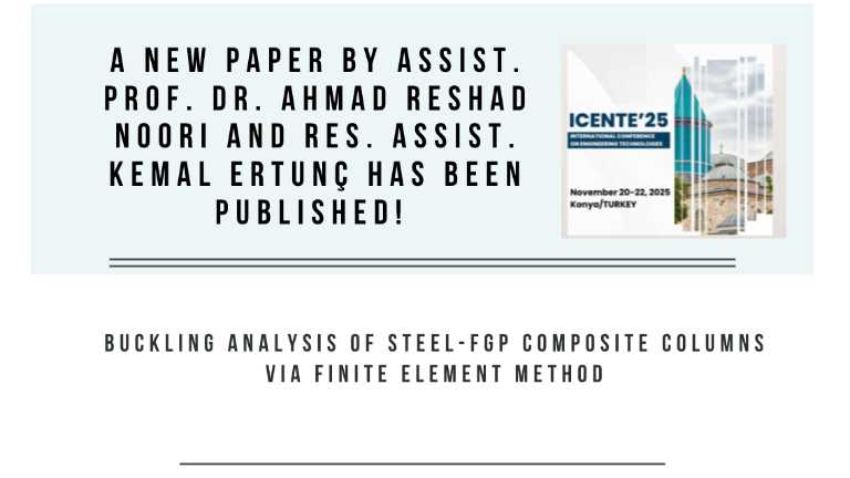 The paper titled “Buckling Analysis of Steel-FGP Composite Columns via Finite Element Method,” co-authored by Asst. Prof. Ahmad Reshad NOORI, Res. Asst. Kemal ERTUNÇ, and ...