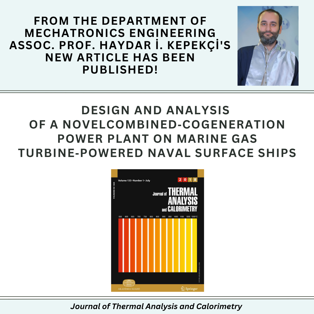 Our faculty member, Assoc. Prof. Haydar İzzettin KEPEKÇİ's article titled “Design and analysis of a novel combined-cogeneration power plant on marine gas turbine-powered naval surface ships” has been published in the Journal of Thermal Analysis and Calorimetry.