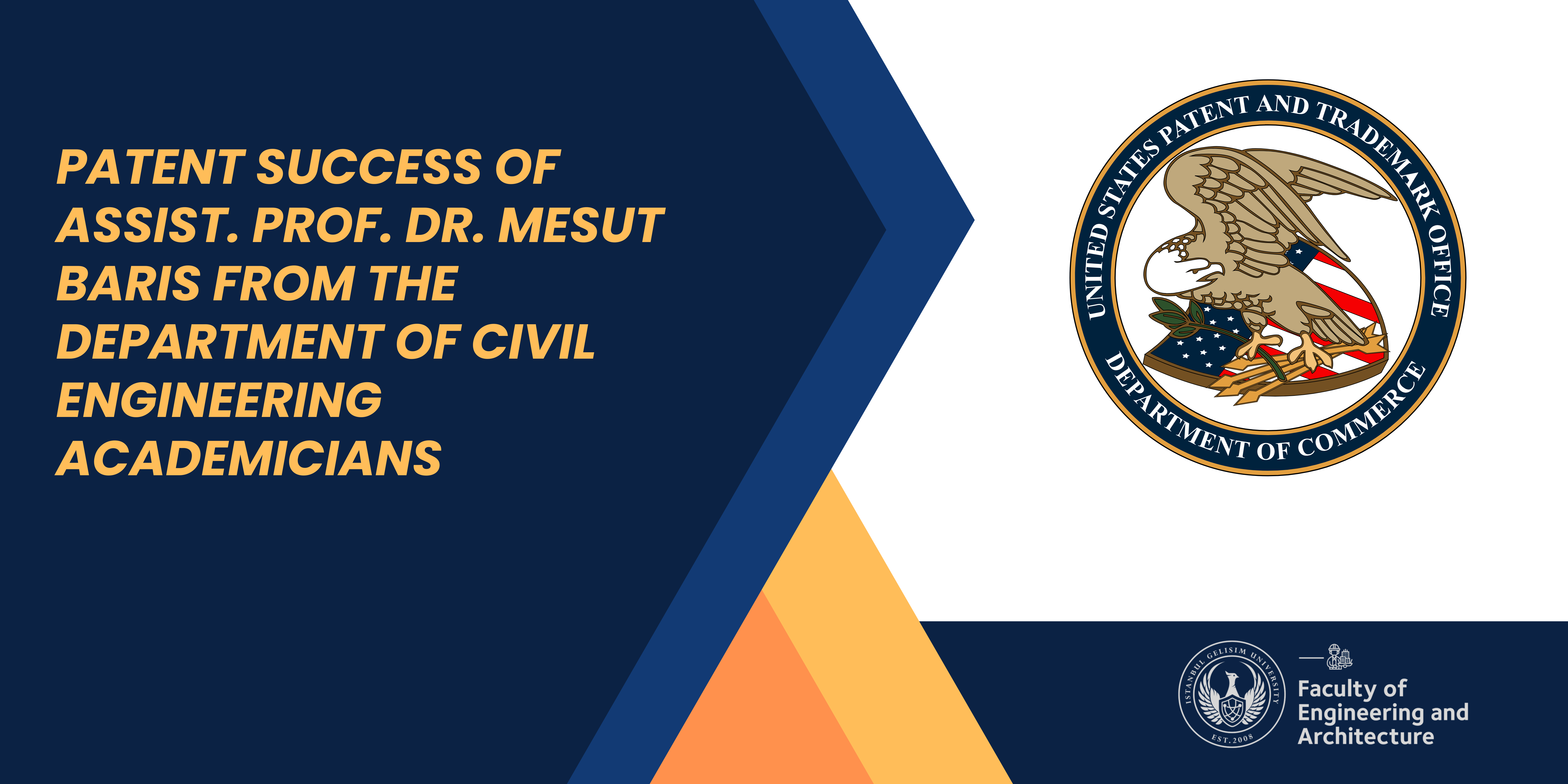 The patent application involving Asst. Prof. Mesut BARIŞ, a faculty member of the Civil Engineering Department, has been officially accepted by the United States Patent and Trademark Office (US Patent). The study was also carried out with the contribution of Prof. Mustafa TOMBUL and Prof. Ali Savaş KOPARAL.