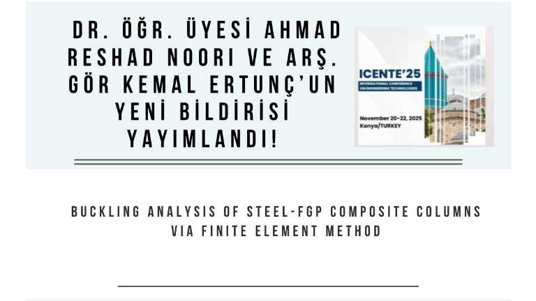 Bölüm Başkanımız Dr. Öğr. Üyesi Ahmad Reshad NOORI, Arş. Gör. Kemal ERTUNÇ ve öğrencimiz Feyza Ahsen TÜRKER’in “Buckling Analysis of Steel-FGP Composite Columns via Finite ...