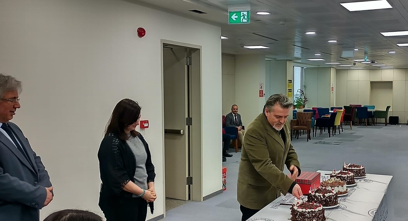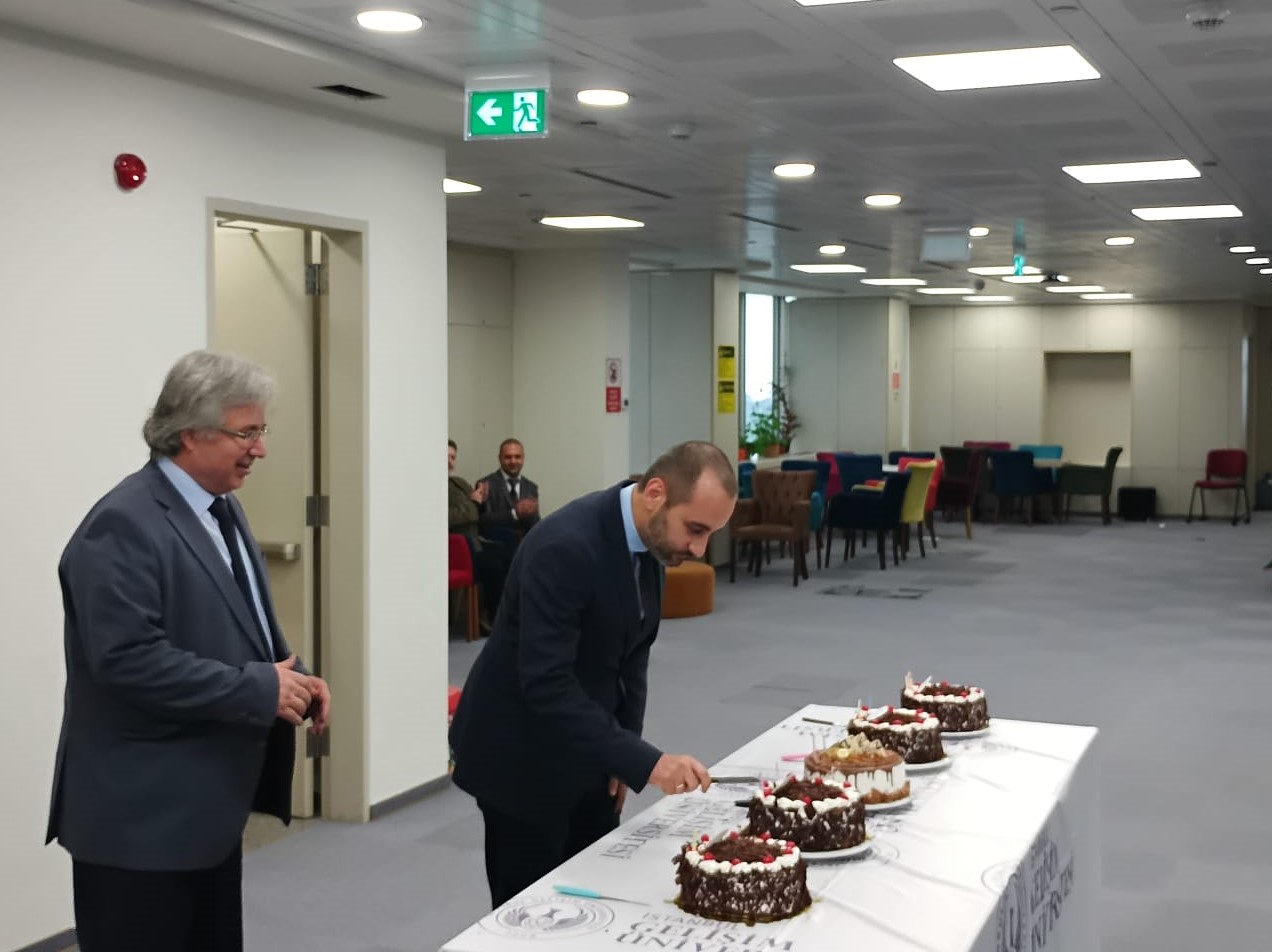 Bu güzel haberi kutlamak ve Mekatronik Mühendisliği Bölümü ve Fakültemizdeki diğer bölümlerden Doçentlik ünvanını kazanan akademisyenlerimizi onore etmek amacıyla 17 Şubat Salı günü bir kutlama gerçekleştirilmiştir. Gerçekleştirilen kutlamaya Rektör Yardımcıları Prof. Dr. Necmettin MARAŞLI ve Prof. Dr. Nuri KURUOĞLU, Mühendislik ve Mimarlık Fakültesi Dekanı Prof. Dr. Bayram ÜNAL ve MMF bünyesindeki akademisyenler katılmıştır. MMF Dekanı Prof. Dr. Bayram ÜNAL’ın açılış konuşmasıyla başlayan kutlama Doçentlik ünvanını kazanan akademisyenlerimizin pasta kesmeleriyle sonlamıştır.