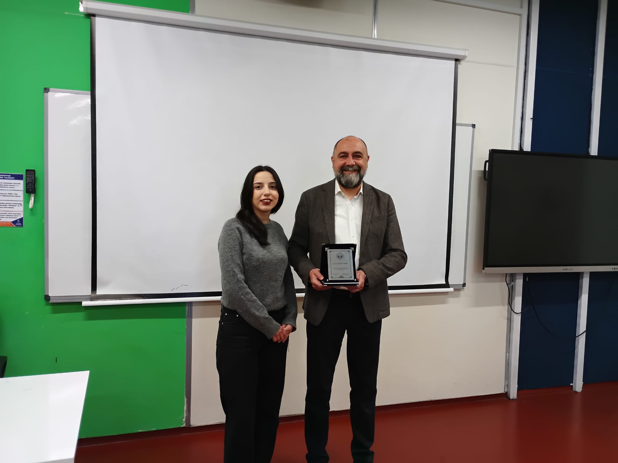 Seminerin sonunda, katkılarından dolayı İstanbul Teknik Üniversitesi Öğretim Üyesi Doç. Dr. M. Şeref SÖNMEZ’e, Mekatronik Mühendisliği Kulübü tarafından teşekkür plaketi takdim edildi.
